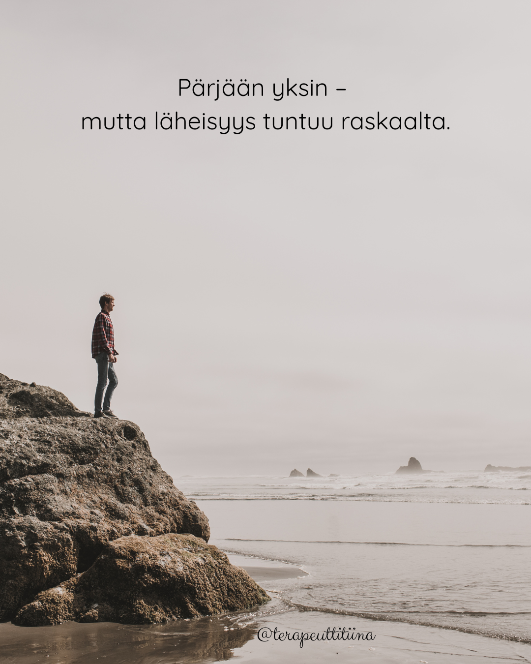 Vaikka pärjään yksin, läheisyys toisen kanssa tuntuu hankalalta. Välillä jopa ahdistavalta. Saatan kaivata yhteyttä, mutta samaan aikaan vetäytyä siitä. En aina osaa sanoa miksi.